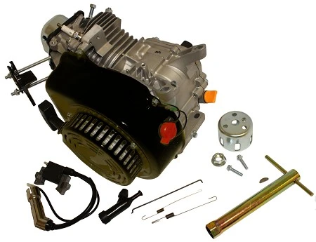 Does NOT include flywheel or cam with this engine, so you must purchase them separately for your engine. This engine is for racing purposes only and will require other parts to complete. Comes with stock carburetor. Does NOT have an RPM governor, low oil sensor, airbox, muffler, fuel tank, camshaft or flywheel. Engine comes with a new, improved spark plug boot. (See Photos)